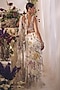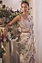 Featuring a white pre-draped saree in chiffon base with print. It is paired with a blouse having mirror hand embroidery. Accentuate it with statement earrings and heels for a festive occasion, wedding, sangeet or engagement ceremony.