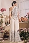 Featuring a white one-shoulder wrap-style top in georgette base with print. It is paired with a padded bustier having side hook and a zip closure, including sharara pants. Accentuate it with dangler earrings and heels for a festive occasion, cocktail, sangeet or engagement ceremony.