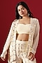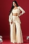 Featuring a yellow cape in georgette base with mirror and thread machine embroidery. It is paired with a hand embroidered top having a sweetheart neckline and straight pants. Accentuate it with statement earrings and block heels for a festive occasion, sangeet ceremony or family gathering.