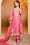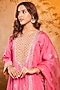 Featuring a pink kurta in silk base with golden embroidery. It is paired with salwar pants and an organza embroidered dupatta. Style it with statement jewellery, block heels and an embellished clutch for festive ceremonies.