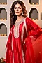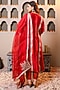 Featuring a red kurta in silk chanderi base with gold embroidery. It is paired with salwar pants and an organza embroidered dupatta. Style it with statement jewellery, block heels and an embellished clutch for festive ceremonies.