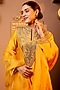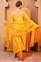 Featuring a yellow kurta in silk chanderi base with golden embroidery. It is paired with salwar pants and an organza embroidered dupatta. Style it with statement jewellery, block heels and an embellished clutch for haldi ceremonies.