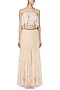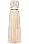 Featuring an ivory off shoulder crop top in chantilly fabric with multi color embroidery. It is paired with ivory lehenga skirt in raw silk with embroidered belt.