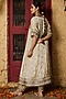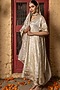 Featuring a gold choga style kurta in banarasi silk tissue blend base with kimono sleeves and embroidery. It is paired with salwar pants and an embroidered dupatta. Accentuate it with statement jewellery and block heels for a festive or pre-wedding ceremony.