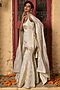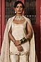 Featuring a gold kurta in banarasi silk tissue blend base with embroidery and a deep scoop neckline. It is paired with sharara pants and an embroidered dupatta. Accentuate it with statement jewellery and block heels for a festive or pre-wedding ceremony.