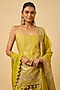 Featuring a mustard yellow short kurta in silk base with spaghetti straps and gota embellishments. It is paired with voluminous pleated sharara pants and a soft organza embellished dupatta. Accentuate it with statement kundan polki jewellery, high heels, and a potli for festive occasions and wedding ceremonies.