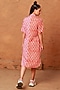 Featuring an orange and pink shirt dress in modal satin base with high-low hem and block print. Its a boxy fit shirt dress.