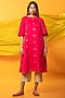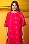 Featuring a pink kurta in silk blend base with thread boota work and sequins machine embroidery, including puffed sleeves. It is paired with gold pants. Style it with dangler earrings and heels for any special occasion.