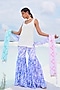 Featuring a white kurta in sequins base with tie-dye print and shell lace embroidery. It is paired with contrasting purple flared sharara pants and a multi-colored georgette dupatta.