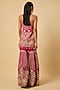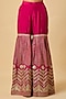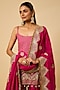 Featuring a rani pink short kurta in silk base with spaghetti straps and gota embellishments. It is paired with voluminous pleated sharara pants and a soft organza embellished dupatta. Accentuate it with statement kundan polki jewellery, high heels, and a potli for festive occasions and wedding ceremonies.