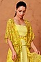 Featuring a yellow cape in georgette base with tassels. It is paired with a matching modal satin bustier and a skirt.