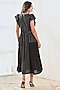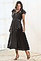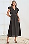 Featuring a black pleated midi dress in cotton base with belted waist and flurry sleeves.