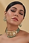 Featuring a gold finish necklace studded with green kundan polki and jadau, set in copper. It is paired with a matching pair of earrings. Perfect wear for festive occasions or wedding ceremonies.
