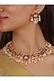 Featuring a gold finish necklace studded with jadau kundan polki, set in mixed metal. It is paired with a matching pair of earrings. Perfect for grand occasions like weddings and traditional festivities.