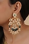 Featuring a pair of 18kt gold plated jadau dangler earrings studded with faux uncut polki stones, semi-precious beads and hangings, set in mixed metal. Perfect for grand occasions like weddings and traditional festivities.