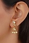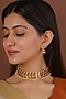 Featuring a 18kt gold plated jadau choker necklace studded with faux uncut polki stones, semi-precious beads and hangings, set in mixed metal. It is paired with a matching pair of earrings. Perfect for grand occasions like weddings and traditional festivities.