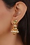Featuring a 18kt gold plated jadau choker necklace studded with faux uncut polki stones, semi-precious beads and hangings, set in mixed metal. It is paired with a matching pair of earrings. Perfect for grand occasions like weddings and traditional festivities.