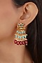 Featuring a 18kt gold plated jadau choker necklace studded with faux uncut polki stones, semi-precious beads and hangings, set in mixed metal. It is paired with a matching pair of earrings. Perfect for grand occasions like weddings and traditional festivities.