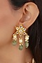 Featuring a 18kt gold plated jadau choker necklace studded with faux uncut polki stones, semi-precious beads and hangings, set in mixed metal. It is paired with a matching pair of earrings. Perfect for grand occasions like weddings and traditional festivities.