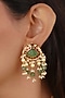 Featuring a 18kt gold plated jadau choker necklace studded with faux uncut polki stones, semi-precious beads and hangings, set in mixed metal. It is paired with a matching pair of earrings. Perfect for grand occasions like weddings and traditional festivities.