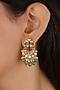 Featuring a 18kt gold plated jadau choker necklace studded with faux uncut polki stones, semi-precious beads and hangings, set in mixed metal. It is paired with a matching pair of earrings. Perfect for grand occasions like weddings and traditional festivities.