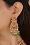 Featuring a 18kt gold plated jadau choker necklace studded with faux uncut polki stones, semi-precious beads and hangings, set in mixed metal. It is paired with a matching pair of earrings. Perfect for grand occasions like weddings and traditional festivities.