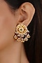 Featuring a 18kt gold plated jadau choker necklace studded with faux uncut polki stones, semi-precious beads and hangings, set in mixed metal. It is paired with a matching pair of earrings. Perfect for grand occasions like weddings and traditional festivities.