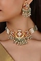Gold Plated Uncut Polki & Beaded Jadau Choker Necklace Set