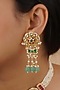 Featuring a 18kt gold plated jadau choker necklace studded with faux uncut polki stones, semi-precious beads and hangings, set in mixed metal. It is paired with a matching pair of earrings. Perfect for grand occasions like weddings and traditional festivities.