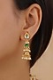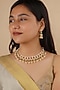Featuring a 18kt gold plated jadau choker necklace studded with faux uncut polki stones, semi-precious beads and hangings, set in mixed metal. It is paired with a matching pair of earrings. Perfect for grand occasions like weddings and traditional festivities.
