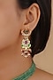 Featuring a 18kt gold plated jadau choker necklace studded with faux uncut polki stones, semi-precious beads and hangings, set in mixed metal. It is paired with a matching pair of earrings. Perfect for grand occasions like weddings and traditional festivities.