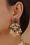 Featuring a 18kt gold plated jadau choker necklace studded with faux uncut polki stones, semi-precious beads and hangings, set in mixed metal. It is paired with a matching pair of earrings. Perfect for grand occasions like weddings and traditional festivities.