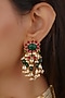 Featuring a 18kt gold plated jadau choker necklace studded with faux uncut polki stones, semi-precious beads and hangings, set in mixed metal. It is paired with a matching pair of earrings. Perfect for grand occasions like weddings and traditional festivities.