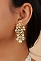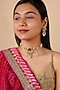 Featuring a 18kt gold plated jadau choker necklace studded with faux uncut polki stones, semi-precious beads and hangings, set in mixed metal. It is paired with a matching pair of earrings. Perfect for grand occasions like weddings and traditional festivities.