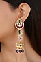 Featuring a pair of 18kt gold plated jadau dangler earrings studded with faux uncut polki stones, semi-precious beads and hangings, set in mixed metal. Perfect for grand occasions like weddings and traditional festivities.
