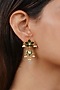 Featuring a pair of 18kt gold plated jadau dangler earrings studded with faux uncut polki stones, semi-precious beads and hangings, set in mixed metal. Perfect for grand occasions like weddings and traditional festivities.