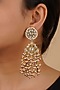 Featuring a pair of 18kt gold plated jadau dangler earrings studded with faux uncut polki stones, semi-precious beads and hangings, set in mixed metal. Perfect for grand occasions like weddings and traditional festivities.