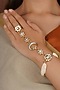 Featuring a 18kt gold plated jadau haathphool studded with faux uncut polki stones, semi-precious beads and hangings, set in mixed metal. Perfect for grand occasions like weddings and traditional festivities.
