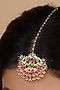 Featuring a 18kt gold plated jadau maangtikka studded with faux uncut polki stones, semi-precious beads and hangings, set in mixed metal. Perfect for grand occasions like weddings and traditional festivities.