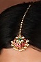 Featuring a 18kt gold plated jadau maangtikka studded with faux uncut polki stones, semi-precious beads and hangings, set in mixed metal. Perfect for grand occasions like weddings and traditional festivities.