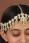 Gold Plated Uncut Polki & Beaded Jadau Mathapatti