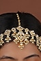 Gold Plated Uncut Polki & Beaded Jadau Mathapatti