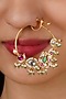 Featuring a 18kt gold plated jadau nose ring studded with faux uncut polki stones, semi-precious beads and hangings, set in mixed metal. Perfect for grand occasions like weddings and traditional festivities.