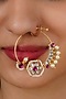 Featuring a 18kt gold plated jadau nose ring studded with faux uncut polki stones, semi-precious beads and hangings, set in mixed metal. Perfect for grand occasions like weddings and traditional festivities.