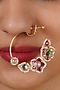 Featuring a 18kt gold plated jadau nose ring studded with faux uncut polki stones, semi-precious beads and hangings, set in mixed metal. Perfect for grand occasions like weddings and traditional festivities.