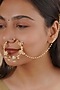 Featuring a 18kt gold plated jadau nose ring studded with faux uncut polki stones, semi-precious beads and hangings, set in mixed metal. Perfect for grand occasions like weddings and traditional festivities.