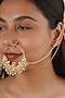 Featuring a 18kt gold plated jadau nose ring studded with faux uncut polki stones, semi-precious beads and hangings, set in mixed metal. Perfect for grand occasions like weddings and traditional festivities.