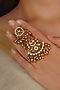 Featuring a 18kt gold plated jadau ring studded with faux uncut polki stones, semi-precious beads and hangings, set in mixed metal. Perfect for grand occasions like weddings and traditional festivities.