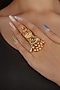 Featuring a 18kt gold plated jadau ring studded with faux uncut polki stones, semi-precious beads and hangings, set in mixed metal. Perfect for grand occasions like weddings and traditional festivities.