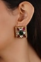 Featuring a pair of 18kt gold plated jadau stud earrings studded with faux uncut polki stones, semi-precious beads and hangings, set in mixed metal. Perfect for grand occasions like weddings and traditional festivities.